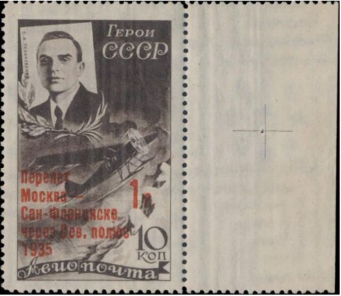 Владимир Дударев и Максим Муханов предлагают вашему вниманию статью-исследование «Марка 1935 г. С.А. Леваневский с надпечаткой «Перелет Москва – Сан. Франциско через Сев. полюс 1935 1р.».