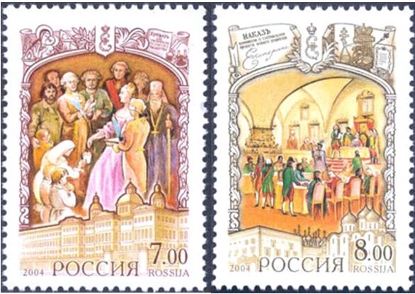 Екатерина Великая много раз была изображена на почтовых марках России.
