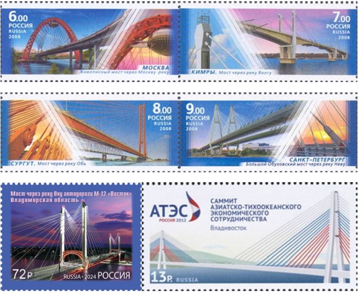 Вантовые мосты — это сложнейшие инженерные сооружения. Их красоту АО «Марка» изобразило на почтовых марках России.