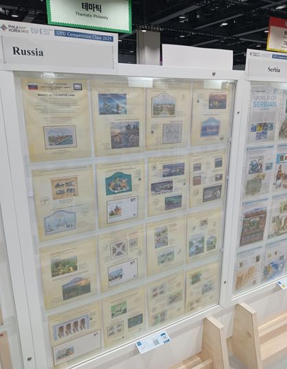 В рамках программы PHILAKOREA 2025 проводилась традиционная выставка экспонатов ХХ конкурса для выпускающих почтовых администраций стран и территорий, организованная Всемирным почтовым союзом (ВПС).