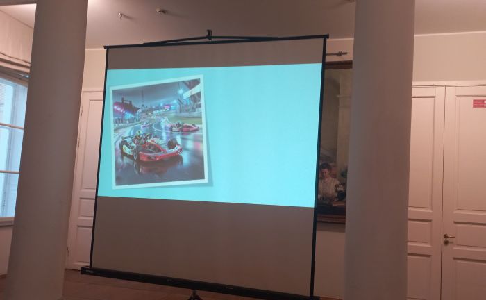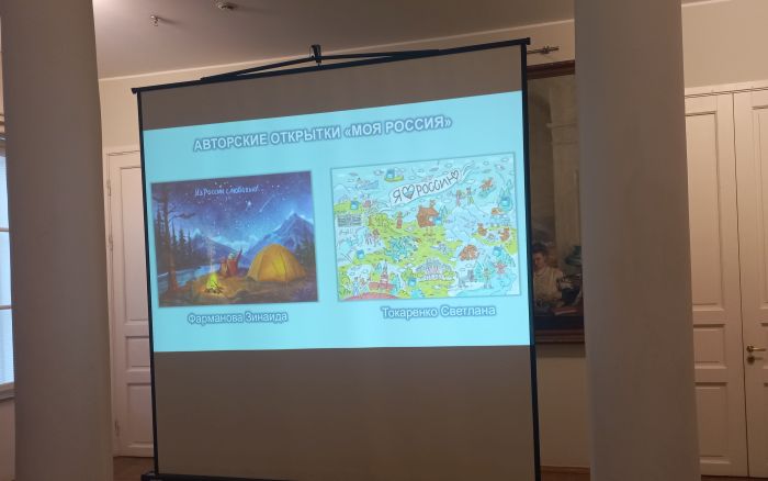 После интерактива все немного перевели дух и познакомились с художниками – призерами конкурса «Моя Россия». На мероприятие ждали питерского дизайнера Светлану Токаренко — автора одной из победившей открытки. К сожалению, она не смогла прийти и записала видеообращение, в котором рассказала о своей конкурсной работе.