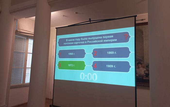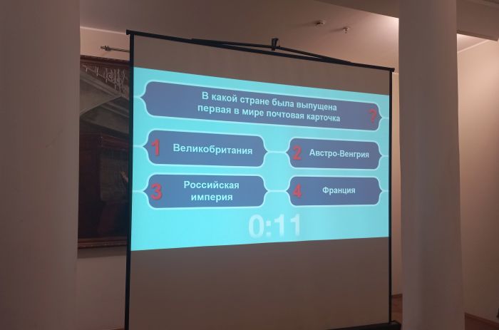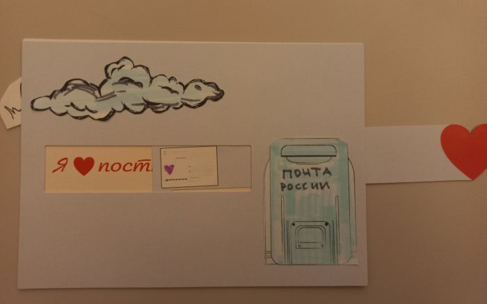Пока люди думали, на экранах вновь появились Филя и Весточка. Они рассказали историю движения Посткроссинга и предложили самым опытным членам клуба подписать открытку на адрес Центрального музея связи имени А.С. Попова... с закрытыми глазами. Это было азартно и весело!