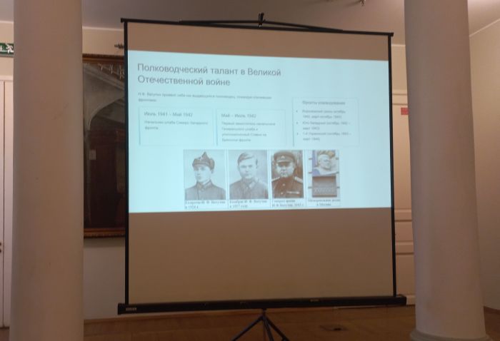 Светлана Михайловна Мишурова, Председатель воронежского отделения СФР, в своем докладе «Ватутин Н.Ф. На государственных знаках почтовой оплаты» рассказала о том, какие филателистические материалы выпущены в честь Николая Фёдоровича Ватутина в СССР и современной России, а также напомнила о значимых исторических вехах Воронежа, связанных с личностью прославленного генерала.
