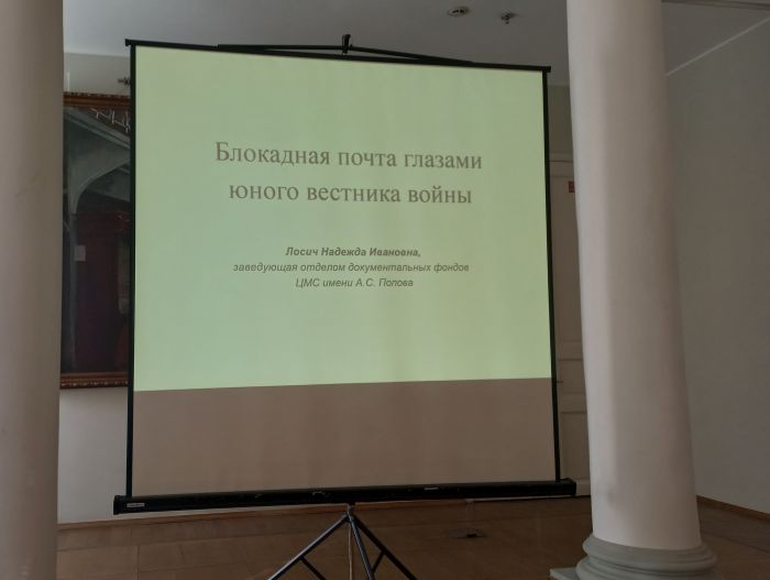 Надежда Ивановна Лосич, заведующая отделом документальных фондов ЦМС имени А.С. Попова, в докладе «Блокадная почта глазами юного вестника войны», рассказала о ленинградке Лёле Кухтинской, которой во время блокады было всего 15 лет. Все это страшное время девочка работала почтальоном. Об этом она поведала сама, когда пришла в Музей связи и принесла старые письма, открытки, документы.