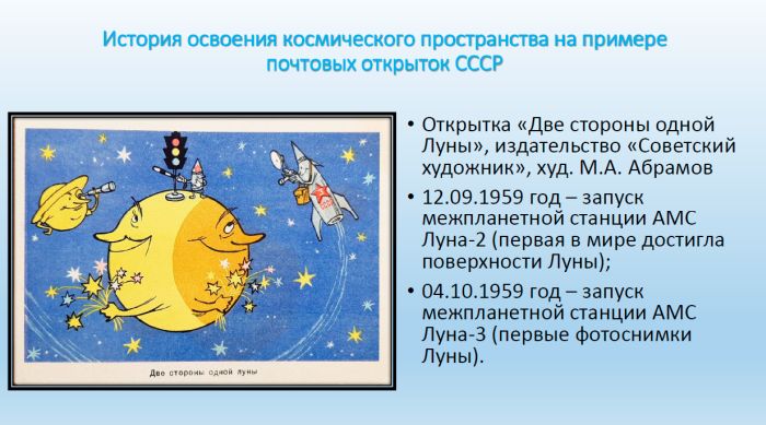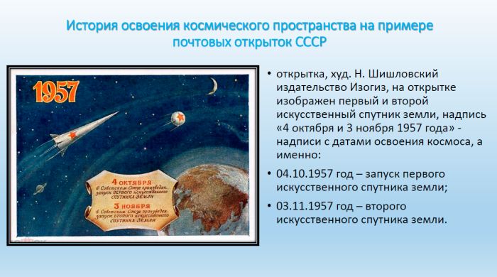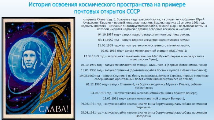 Представляем на ваш суд первую конкурсную работу «История освоения космического пространства на примере почтовых открыток СССР», которую прислал Р.И. Ланкин.