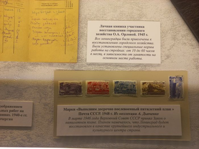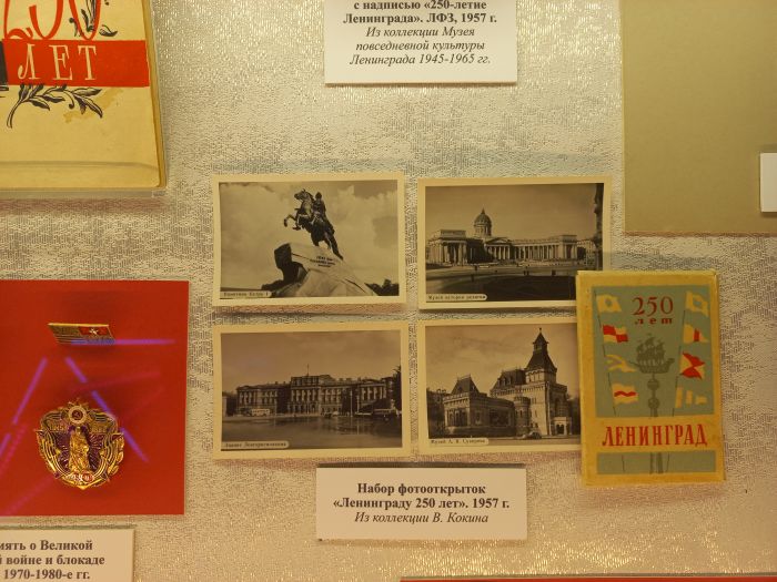 Подробнее узнать о повседневной жизни Ленинграда той поры помогут литографии А.Ф. Пахомова, фотографии, документы, открытки, а также почтовые марки из коллекции А.П. Дьяченко.