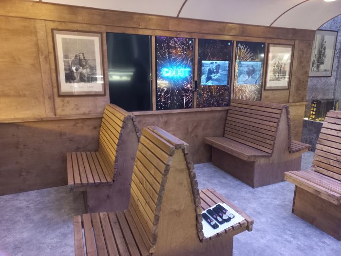 Открыв дверь выставочного зала, вы сразу попадете... в трамвай, на котором и «поедете» по послевоенному Ленинграду.