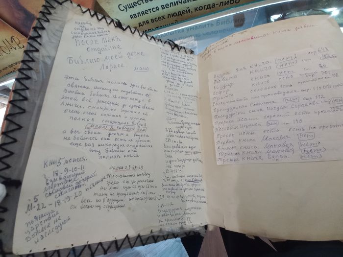 Хозяйка даже оставила завещание на корочке обложки: «После меня отдайте Библию моей дочке Ларисе...».