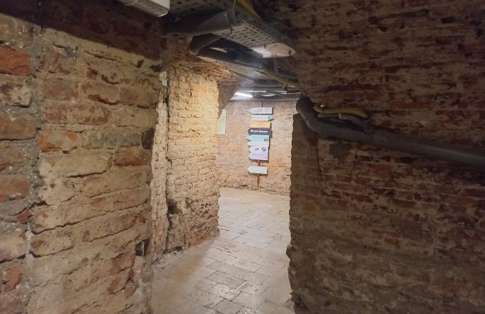 Музей истории Библии найти сложно. Он расположен в бизнес-центре «Дворец Кваренги» на цокольном этаже. Это здание, построенное в 1808-1810 гг. по проекту архитектора Джакомо Кваренги для Опекунского совета, который находился под надзором императрицы Марии Федоровны, поражает своей монументальностью. Оно перестраивалось дважды, но подвал остался без изменения — массивные кирпичные стены, длинные туннели коридора, овивают его своим серпантином.