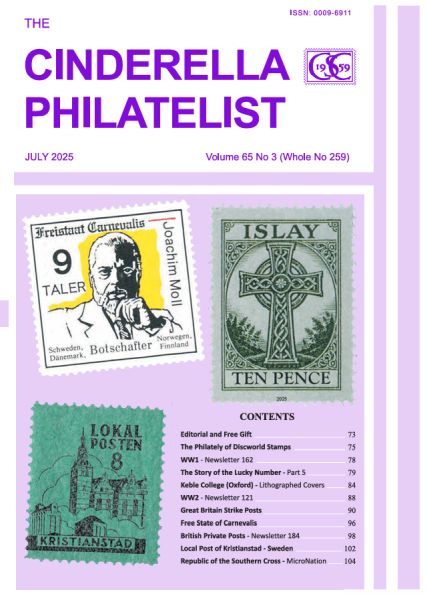 Публикация о Карнавалисе в июльском номере «The Cinderella Philatelist»