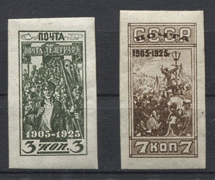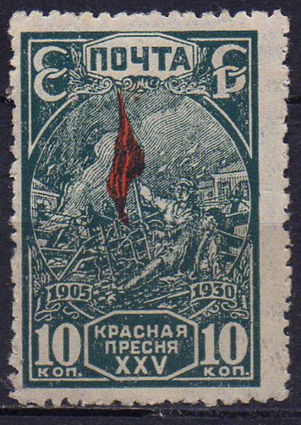 Революция 1905 года нашла разностороннее отражение в почтовой графике – марках, конвертах и штемпелях. Начиная с ранних этапов эволюции советского почтового дизайна революционные события регулярно отмечались выпуском марок, художественных конвертов и специальных штемпелей (спецгашений).