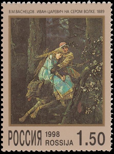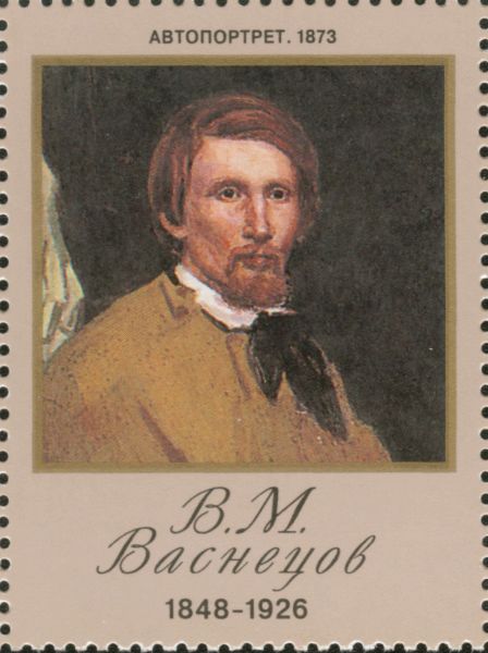 Марка добровольного сбора жертвам войны 1914 года. Художник В. М. Васнецов.