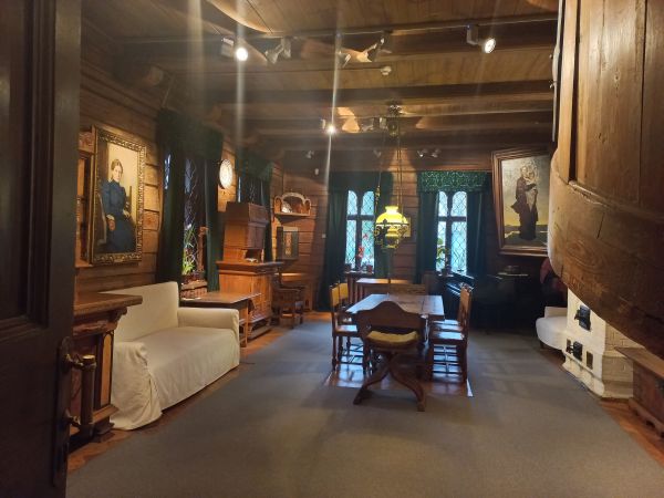 Хозяин дома очень любил русское народное искусство и вся обстановка в нем, включая печи, создавалась именно в этом стиле. Часть мебели была выполнена по рисункам Виктора Васнецова и его младшего брата Аркадия, а что-то куплено в антикварных лавках.