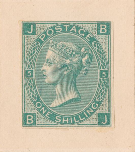 На изображении ниже показано, как выглядела настоящая зелёная марка достоинством в один шиллинг. Как видите, в верхнем и нижнем углах марки есть буквы. Это было введено вместе с «Чёрным пенни» (первым в истории почтовым индексом) для предотвращения подделок, и в данном случае это был один из отличительных признаков, использовавшихся для их идентификации.