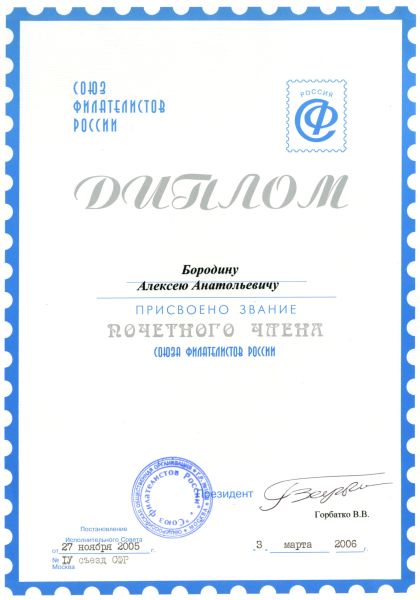 Это был второй, важный этап в моей филателистической жизни, на очередном съезде СФР меня избрали вице-президентом. До этого и после этого, я не прекращал заниматься выставочной работой на всероссийском и межрегиональном уровне, возглавил Коллегию жюри СФР.