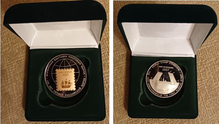 Медаль Всемирной выставки почтовых марок «Санкт-Петербург 2007» (аверс и реверс). СПМД**