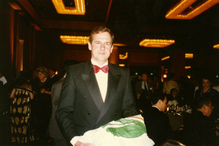 С флагом ФИП, переданным Выставке «Москва 97». Сан-Франциско. 1996 г.