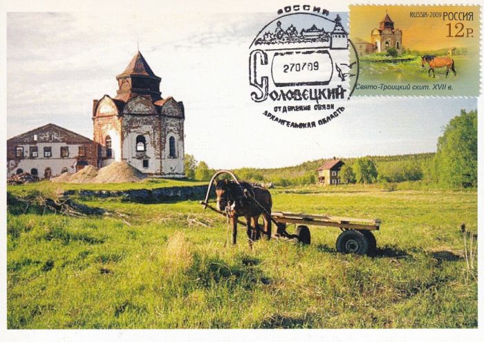 Дата гашения — первый день выпуска марок. Рисунок гашения показывает общий вид Соловков. Карточки подобраны к маркам старательно и трепетно.