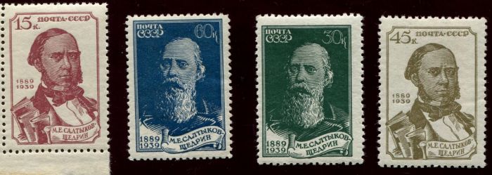 Портрет Салтыкова-Щедрина неоднократно изображался на почтовых марках. В 1939 году, в связи с 50-летием со дня смерти писателя, вышла серия из 4 марок.