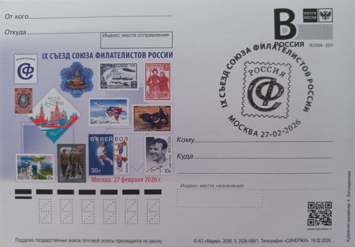 27 февраля 2026 года в Москве прошел очередной IX съезд Союза филателистов России, в рамках работы которого состоялись выборы президента СФР, вице-президентов и Президиума Исполнительного Совета Союза. Также участники ознакомились с результатами работы организации за отчётный период и дали оценку деятельности СФР.