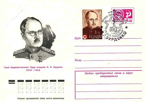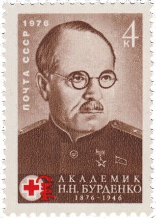 Почтовая марка СССР «К 100-летию со дня рождения академика Н.Н. Бурденко», 1976 год.