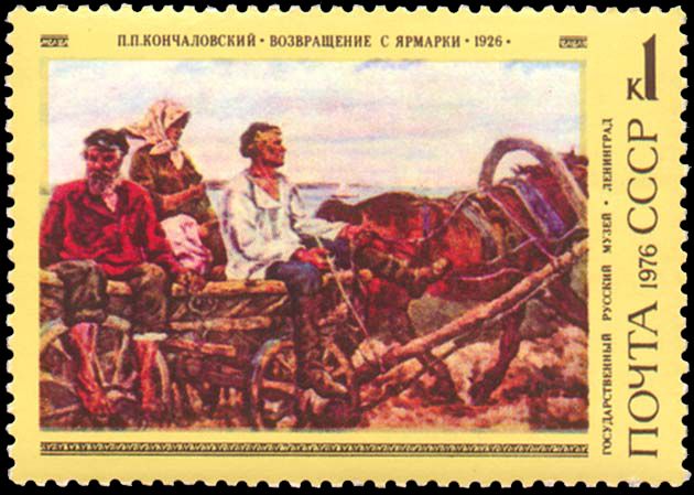 В собрании Государственного Русского музея в Санкт-Петербурге хранится полотно Кончаловского «Возвращение с ярмарки», представленное на марке № 4560, открывающей серию почтовых эмиссий в оформлении Ивана Мартынова, приуроченную к столетию со дня рождения живописца.
