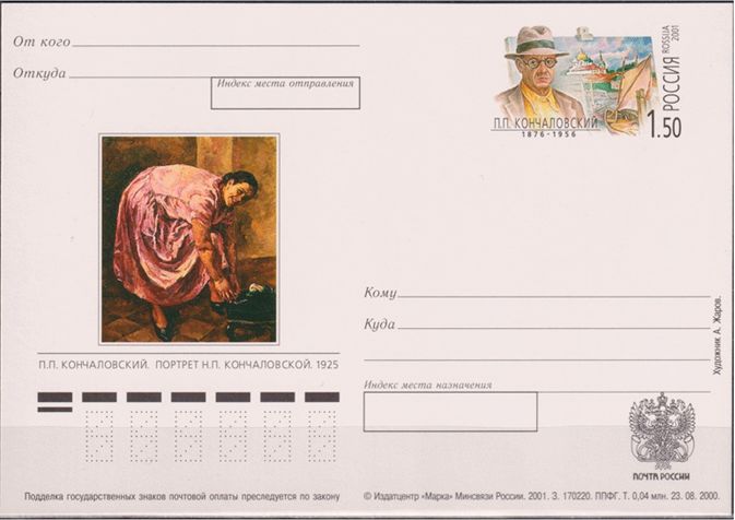 Эта работа Петра Петровича представлена на иллюстрации карточки с оригинальной маркой № 111/окр-01 в оформлении художника А. Жарова «125 лет со дня рождения П.П. Кончаловского», увидевшей свет 12 февраля 2001 года.