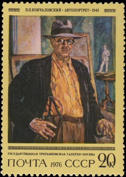 В это же время Пётр Петрович пишет автопортрет, представленный в собрании Государственной Третьяковской галереи. Он воспроизводится на почтовой марке (Соловьев СУ №4564), завершающей серию из пяти почтовых миниатюр к столетию со дня рождения П.П. Кончаловского в дизайне Ивана Мартынова.