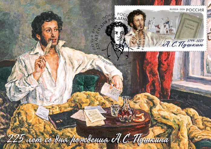 В 1940 году Петр Петрович Кончаловский создает живописное полотно «Пушкин в Михайловском», фрагмент которого составляет изобразительный ряд картмаксимума № 2024-086/4 в оформлении М. Бодровой «225 лет со дня рождения А.С. Пушкина», поступившего в продажу в день юбилея великого поэта 6 июня 2024 года.