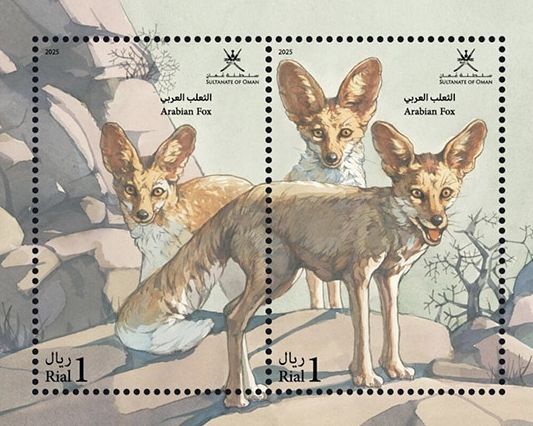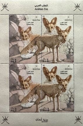 Почта Омана в 2025 году выпустила малый лист и почтовый блок на флокированной бумаге, посвящённые арабской (аравийской) рыжей лисице (Vulpes vulpes arabica). Это одно из редких животных, которое обитает в Султанате Оман.