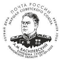 Портрет Дважды Героя Советского Союза маршала А.М. Василевского изображён на почтовой марке. Выпущен специальный почтовый штемпель для гашения в г.Кинешме.