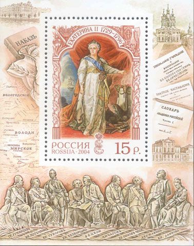 Екатерина Великая много раз была изображена на почтовых марках России.