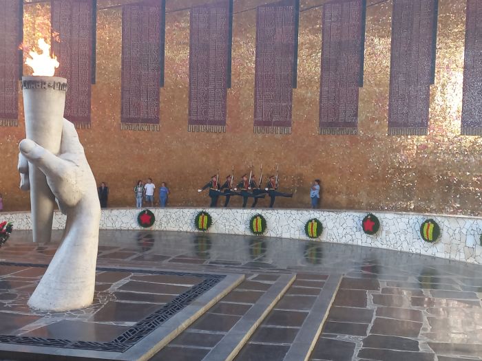 У Вечного огня и на выходе из пантеона, с января 1968 года, с 9 утра до 8 вечера, стоит Почетный караул. Это солдаты 46-й стрелковой (элитной) роты Почётного караула Волгоградского гарнизона.