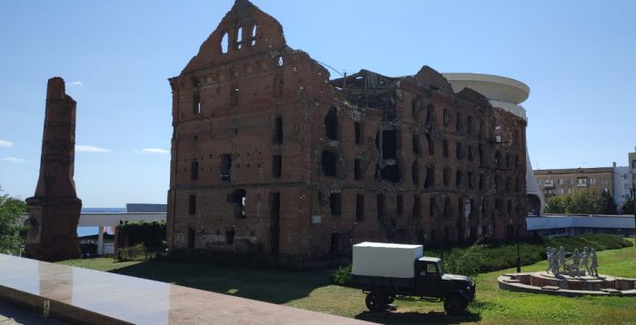Здание мельницы, разрушенное в дни Сталинградской битвы и не восстановленное как память о войне.