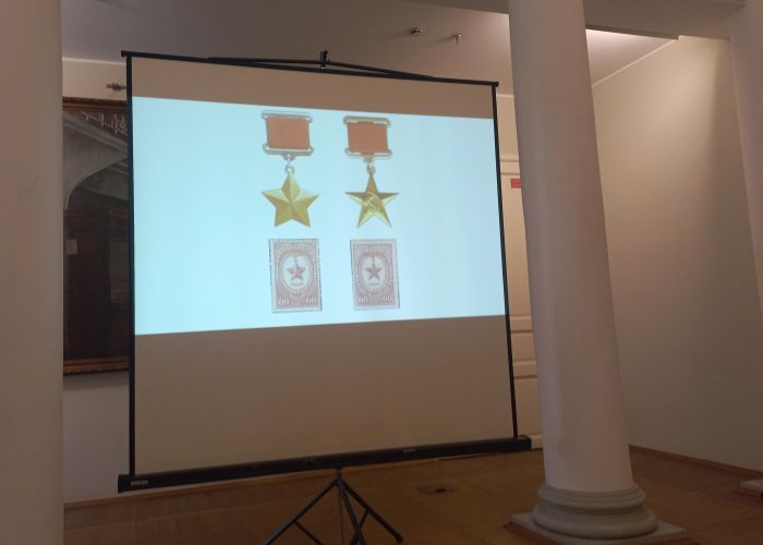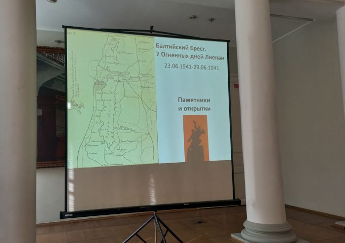 Андрей Львович Веселов, коллекционер из Санкт-Петербурга поведал историю создания советских памятников, связанную с событиям героической обороны Лиепаи 1941-го года, отраженных на марках и почтовых отправлениях. Также Андрей Львович рассказал о трагической судьбе этих памятников и двойных стандартах властей «независимой» Латвии. Доклад называется «1941-й. Семь огненных дней Лиепаи. История утраченных памятников в филателии и филокартии».