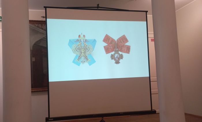 Владислав Николаевич рассказал интересную историю орденов «Святой Великомученицы Екатерины» и «Святого апостола Андрея Первозванного». По Указу Павла I каждого родившегося великого князя при крещении награждали орденом «Святого апостола Андрея Первозванного», а великих княжон — орденом «Святой Великомученицы Екатерины». С той поры в России появилась традиция перевязывать новорожденных девочек красной лентой, а мальчиков синей, в соответствии с цветом лент, на которых носились эти ордена.
