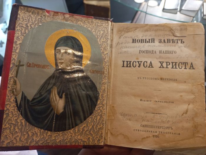Вот как, к примеру, эта именная Библия (на нижнем фото слева). Толстая, потрепанная книга. Судя по всему, пользовались ею часто, с любовью и почтением...