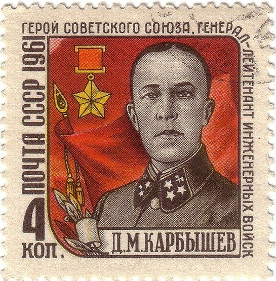 К 22 июня 1961 года советским художником Алексеем Завьяловым была оформлена первая, и до сих пор единственная почтовая марка №2591 по каталогу Соловьева, посвящённая подвигу Дмитрия Михайловича Карбышева. Которую, на наш взгляд, следует демонстрировать обучающимся в первую очередь. Поскольку она представляет собой ценный артефакт советской эпохи, непосредственно связанный с именем героя.