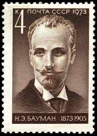 Совсем другая стилистика у марок с портретами И.Бабушкина (1873 – 1906) и Н.Баумана (1873 – 1905). Они выполнены в технике гравюры на металле и отличаются тонкостью исполнения.