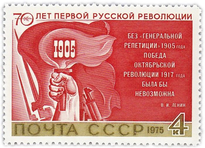Революция 1905 года нашла разностороннее отражение в почтовой графике – марках, конвертах и штемпелях. Начиная с ранних этапов эволюции советского почтового дизайна революционные события регулярно отмечались выпуском марок, художественных конвертов и специальных штемпелей (спецгашений).