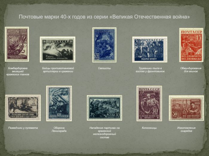 Марки должны быть более детальными и художественными: такими как, например, почтовые марки 40-х годов из серии «Великая Отечественная война».