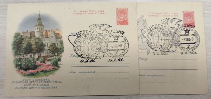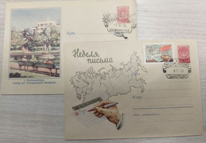 В 1960 году на праздничных конвертах появилась карта страны — как бы подчеркивая, что почта связывает самые удаленные города. Посыл нельзя назвать голословным: и в Калининграде, и в Петропавловске-Камчатском нашлись коллекционеры, которые поставили на конверты штемпели Недели письма. А на следующий год границы расширили еще раз и на конверте был изображен земной шар.