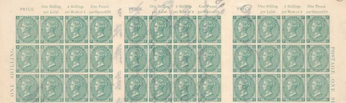 На изображении ниже показано, как выглядела настоящая зелёная марка достоинством в один шиллинг. Как видите, в верхнем и нижнем углах марки есть буквы. Это было введено вместе с «Чёрным пенни» (первым в истории почтовым индексом) для предотвращения подделок, и в данном случае это был один из отличительных признаков, использовавшихся для их идентификации.