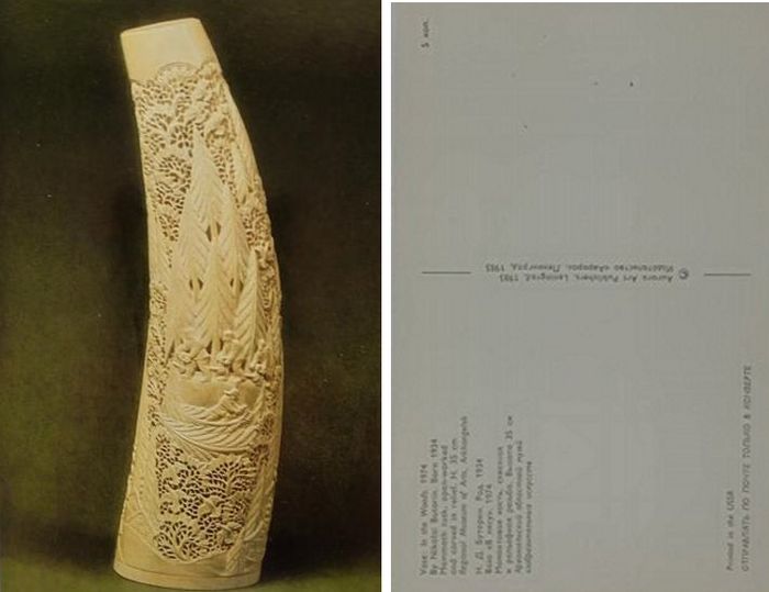 Наконец, считаем своим долгом вспомнить добрым словом и еще одного мастера косторезного искусства, который всю свою жизнь трудился на севере. Это Николай Дмитриевич Буторин (1934-2013), произведения которого можно было встретить на репродукционных открытках в советскую эпоху.