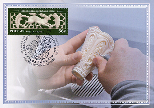 11 декабря 2019 года на портале «Филателия.РУ» была опубликована статья «Резьба по кости». Поскольку сегодня объект нашего внимания — Холмогорская резная кость и посвящённые ей филателистические и филокартические материалы, мы имеем возможность выразить здесь автору материала чувство глубокой признательности, и продолжить затронутую им тему в более узком направлении.