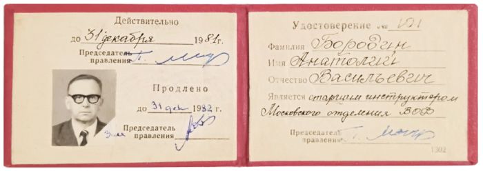 Удостоверение инструктора Мо ВОФ. 1981 г.