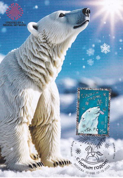 Марка номиналом 25 руб. Белый медведь.