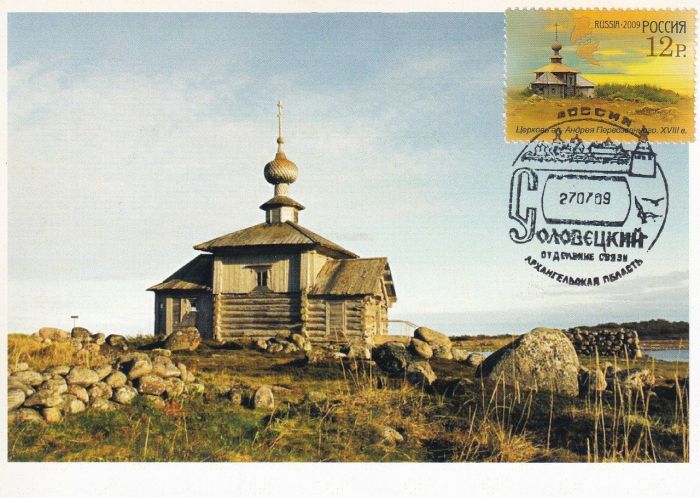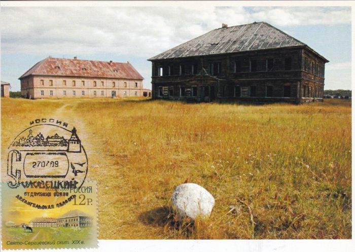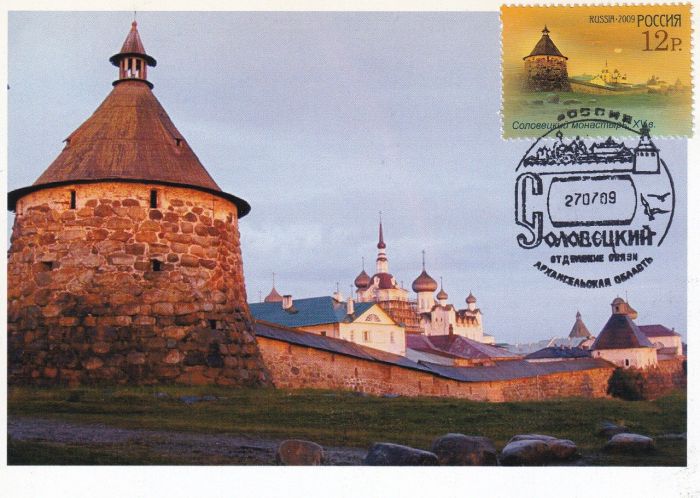 Дата гашения — первый день выпуска марок. Рисунок гашения показывает общий вид Соловков. Карточки подобраны к маркам старательно и трепетно.