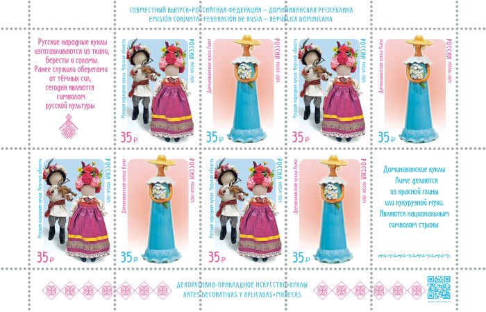 8) Совместный выпуск Российской Федерации и Доминиканской Республики. К 80-летию установления дипломатических отношений. Декоративно-прикладное искусство. Куклы
