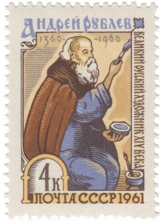 На почтовой марке 1961 года изображён Андрей Рублёв, пишущий образ Спаса.
